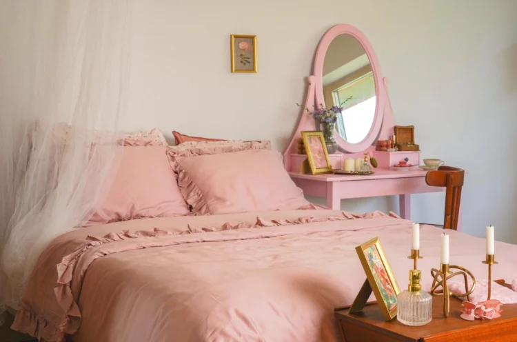 Sanrio characters emit a sweet, dreamy, and charming essence. Fittingly, a Sanrio collector’s dream home would be castle-inspired with arched doorways, pale wood flooring, and large windows framed by cream-coloured drapery. A small Juliet balcony, antique trim, and sparkling chandeliers add to the space, while lace tablecloths and ruffled cushions create a fairytale finish.