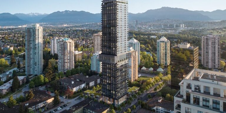 Back to back with Bosa’s Central Park House and Solhouse 6035 will be two towers by Polygon Homes. In 2023, Polygon received approval for Perla, a 38-storey tower at 5938 Olive Avenue with 339 strata units; Onyx, a 34-storey tower at 5860 Olive Avenue with 261 strata units; and a six-storey rental building with 118 non-market rental units that will be owned and operated by New Vista Society. Construction has commenced on the rental building while both strata buildings are now selling.
