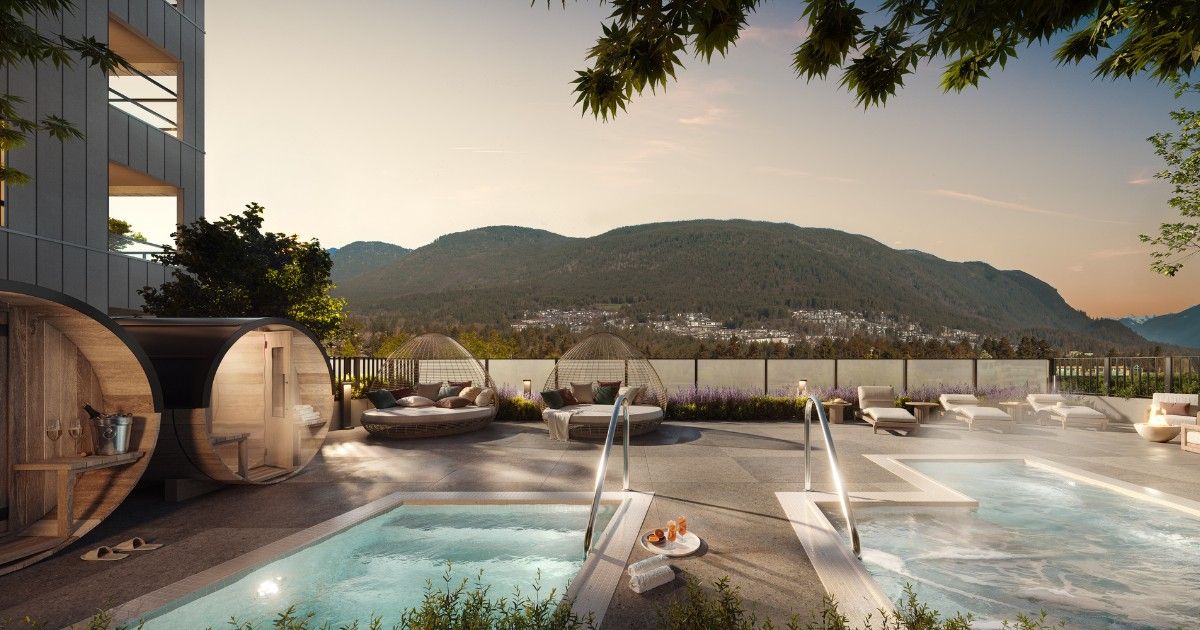 Outdoor spa at upcoming condo project Livy in Port Coquitlam, B.C. (Photo: NorthStar Development)