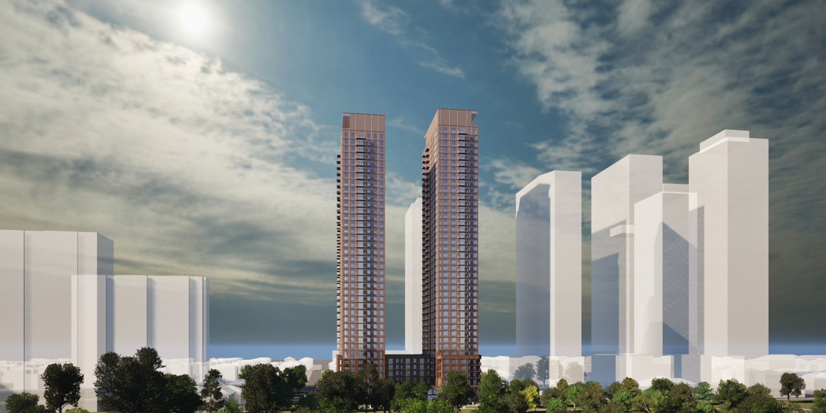 Toronto-based developer DiamondCorp recently submitted plans for a 40 and 38-storey residential development that could one day replace seven single-family homes in Yorkdale-Glen Park with over 900 condo units.