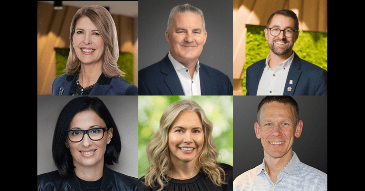 CREA announces board of directors for Realtor.ca. From top left: Janice Myers, CEO, CREA; David Oikle, board chair, Realtor.ca; James Mabey, immediate past chair, CREA; Sheila Morin, CMO, Coveo; Sarah Miller Wright, former COO, Manulife; Peter Lukomskyj, CEO of Radiant Health