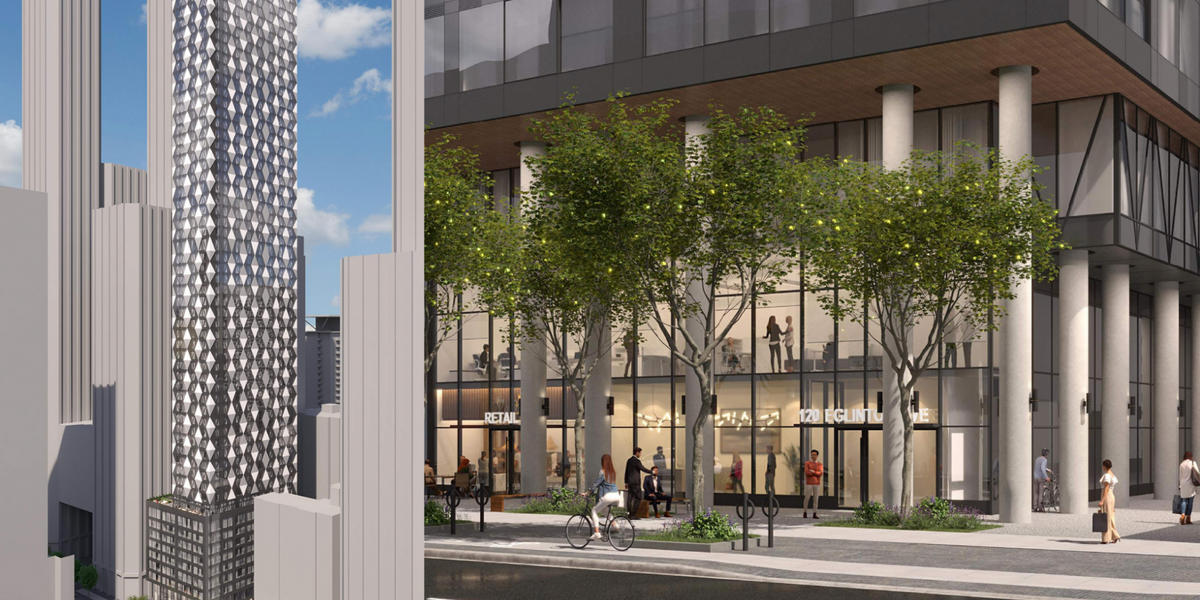 An Official Plan Amendment application is also being filed in order to remove the existing office gross floor area (GFA) requirements under the Yonge-Eglinton Secondary Plan, which require that 100% of existing office space be replaced if an office building is demolished for redevelopment — a requirement Ruth Reisman Ltd is hoping to avoid. In their Planning Rationale, the developer argues that the 100% replacement policy is “unbalanced and out of step with the evolving market,” given the downturn in office space demand sparked by the COVID-19 pandemic.